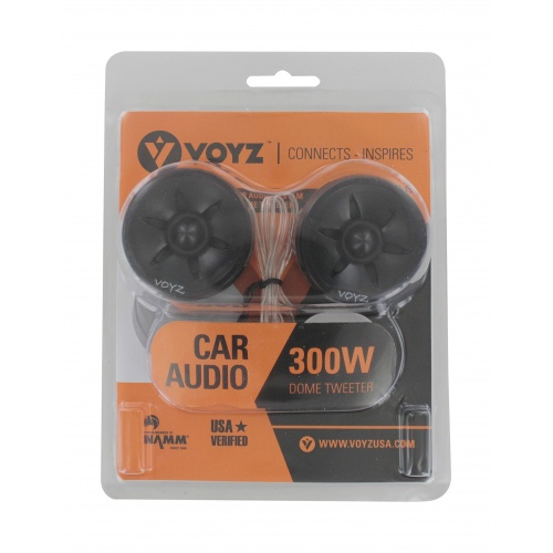 Tweeters eléctricos piezoeléctricos estéreo con cables de conexión, contraportada para tornillos y adhesivo de montaje.