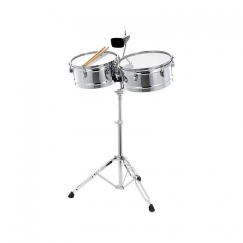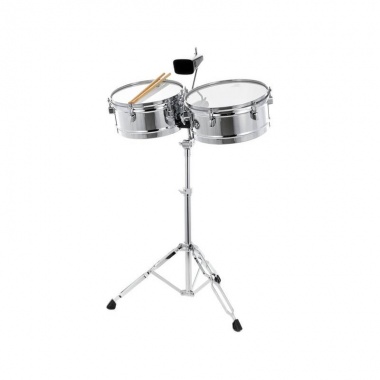 -Timbales de acero cromado, diámetros de 13" y 14", profundidad de 6-1/2